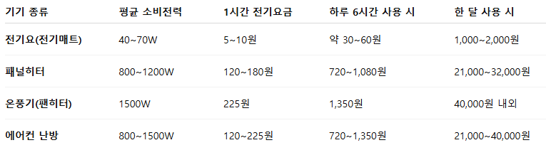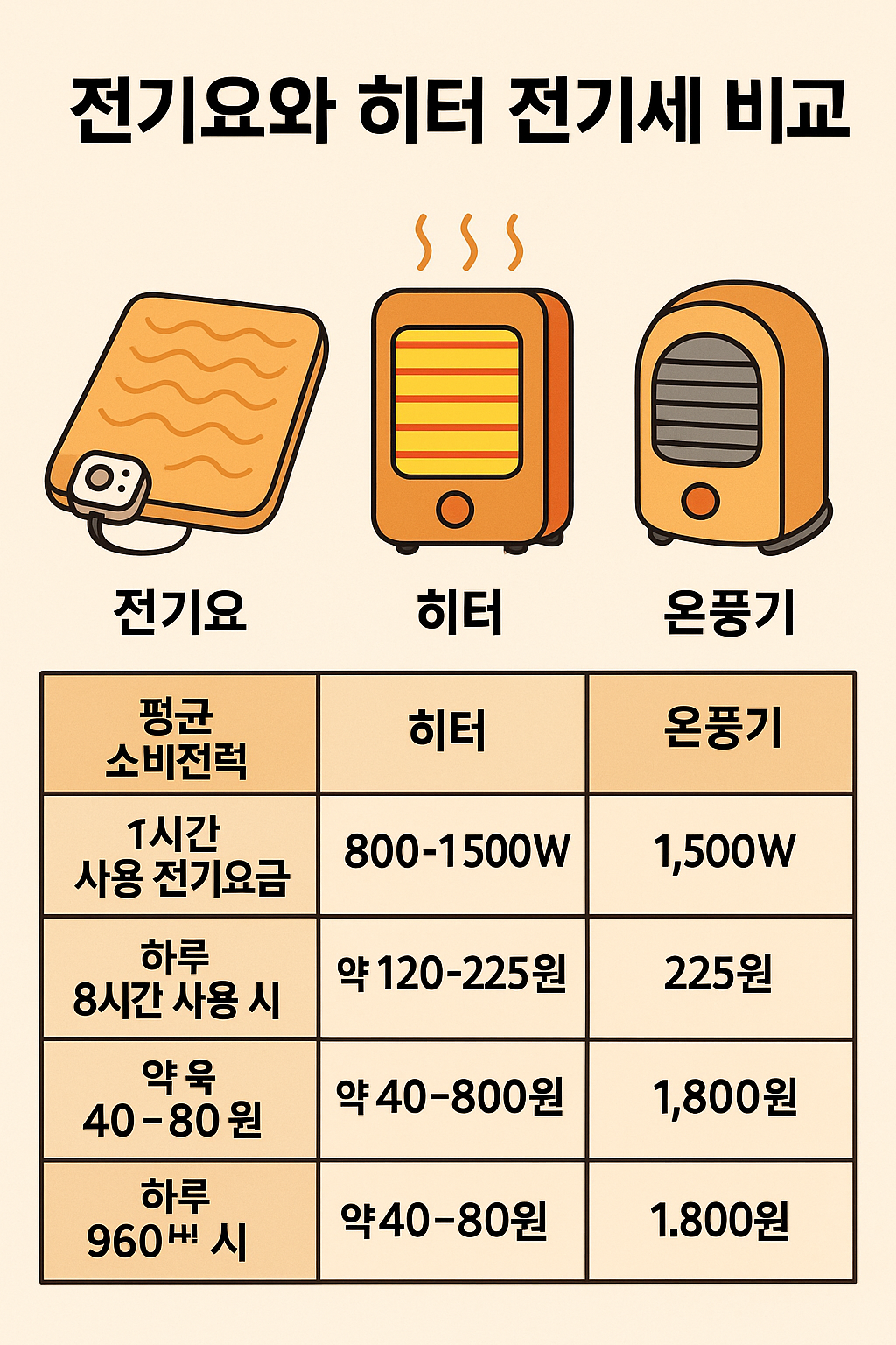 🔍 전기요 vs 히터 vs 온풍기 전기세 비교