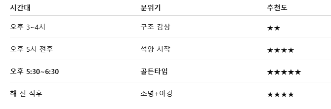 1️⃣ 일몰과 구조가 완벽하게 계산된 장소