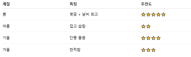✅ 벚꽃 시즌: 3월 말 ~ 4월 초