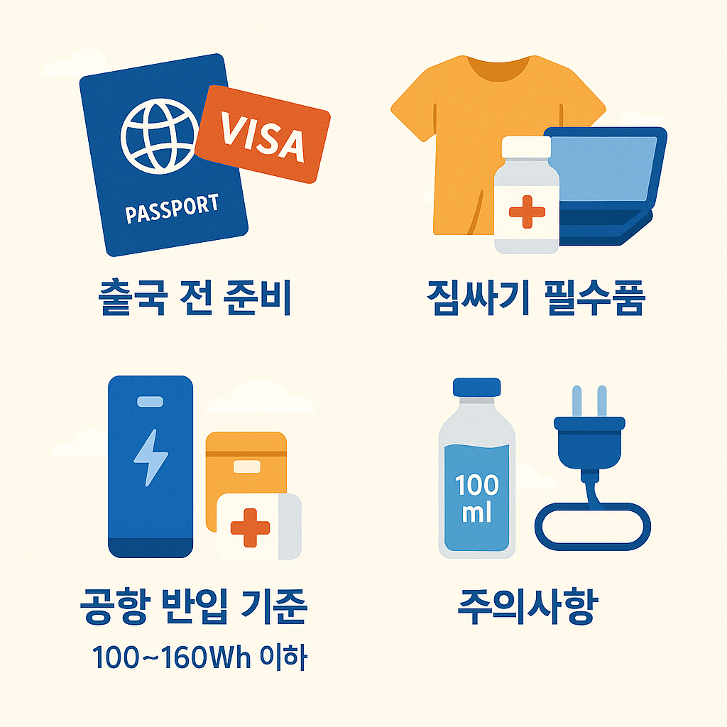 오늘은 곰비드가 직접 정리한 **출국 전 준비물 필수 체크리스트 + 보조배터리 항공 규정 최신판(2025)**까지 알려드릴게요!