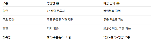 ## 🔍 여름 감기 증상 구별법 + 냉방병 차이