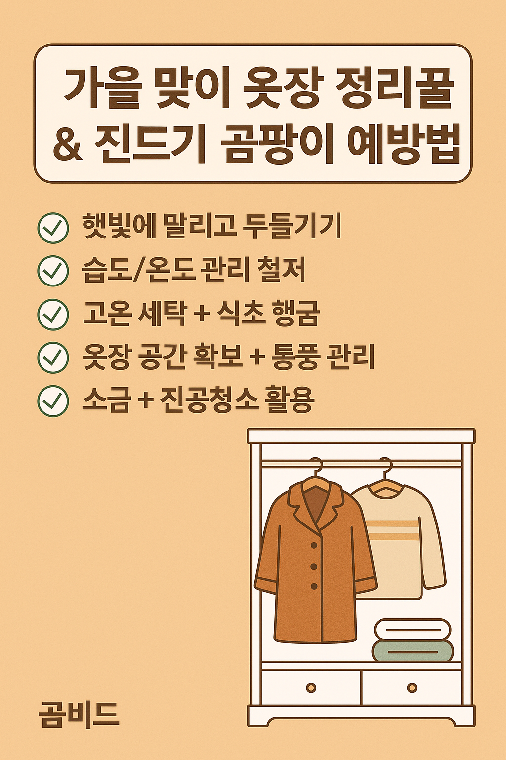 옷과 건강을 지키는 가을맞이 옷장 정리 6단계 체크리스트를 제습기·천연 세탁세제·방습제 활용 팁과 함께 정리했습니다.