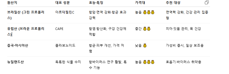 “프로폴리스 원산지별 특징과 차이를 한눈에! 브라질산·유럽산·뉴질랜드산 성분·효능·가격을 비교해 나에게 맞는 최적의 제품 선택 가이드를 제공합니다.”