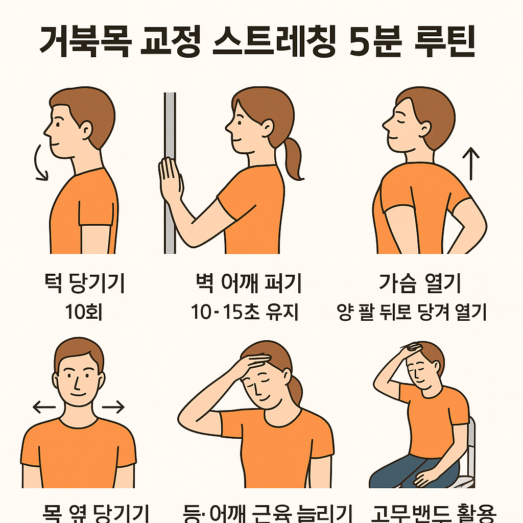 5. 거북목 교정 운동 루틴 (하루 5분) 🕔