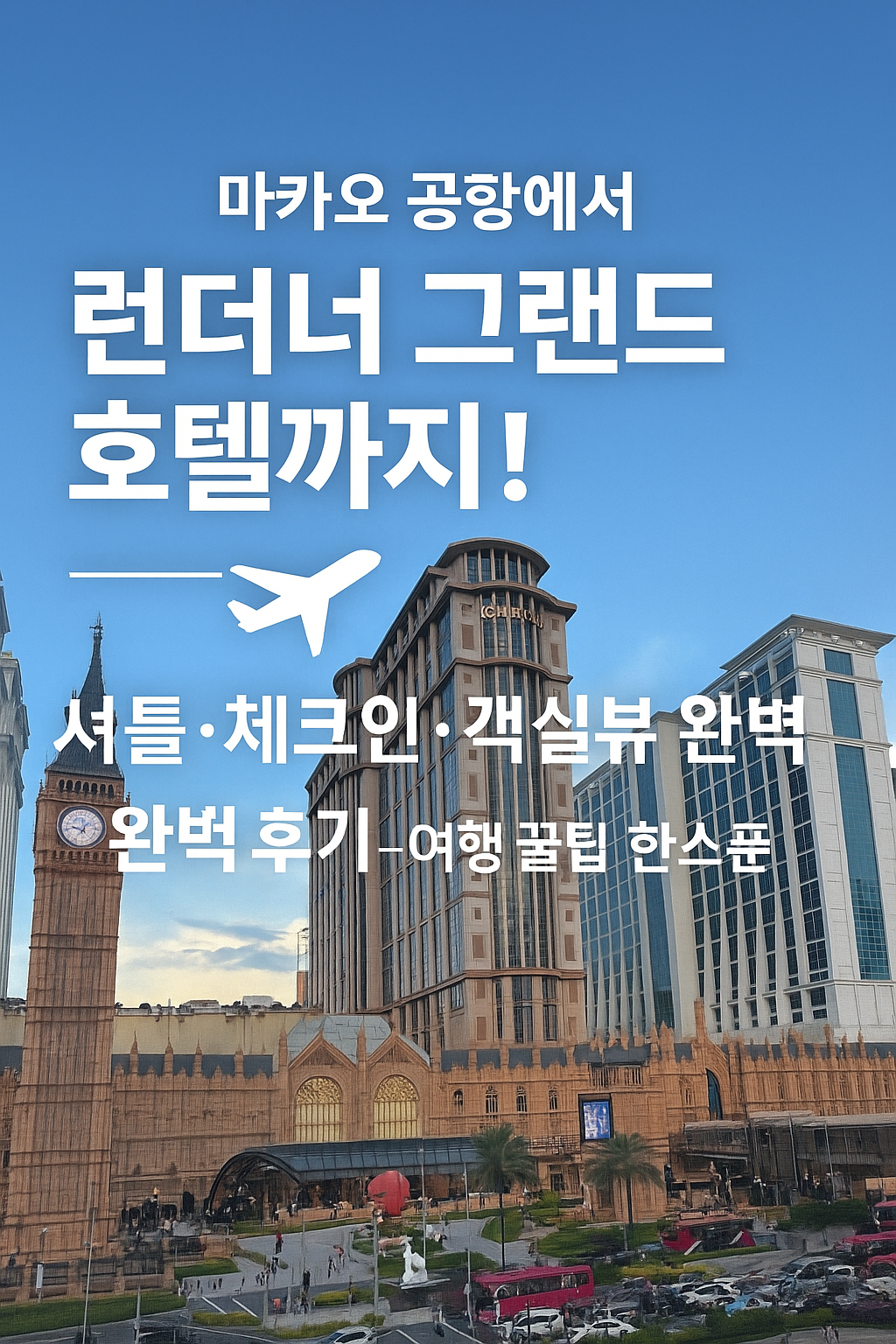마카오 공항 입국 → 무료 셔틀 → 런더너 호텔 체크인·객실 뷰까지, 모든 과정이 빠르고 쾌적했습니다.