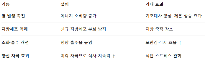 💬 즉, “칼로리 0의 미각 자극제”이자 “식단 지속 보조제” 역할을 하는 천연 대사 촉진제예요.