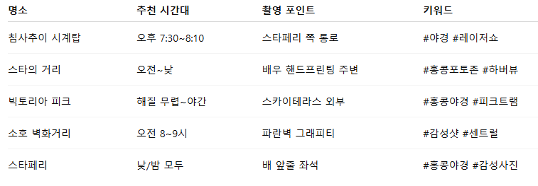 ✨ 홍콩 인생샷 여행, 어디서 찍을까?