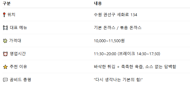 👉 이 집은 트렌디한 화려함보다는 ‘돈까스의 본질’에 충실한 집이에요.